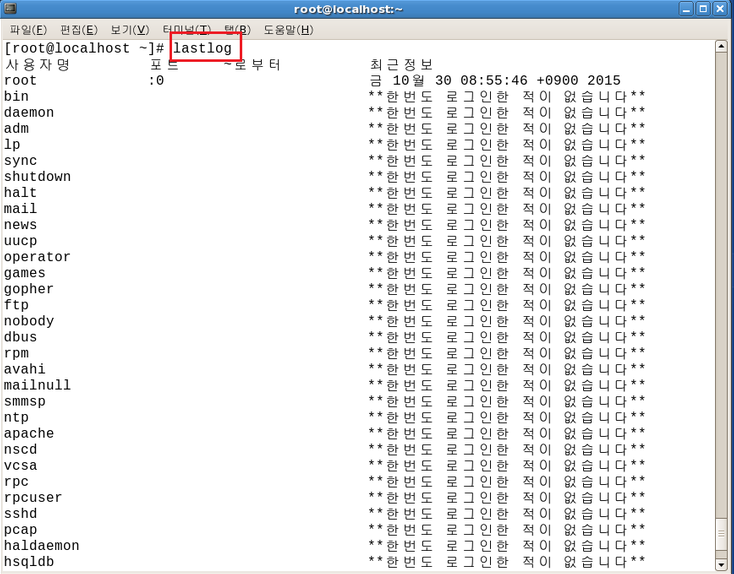 lastlog -u / --login ์ ์์ด๋ฆ
