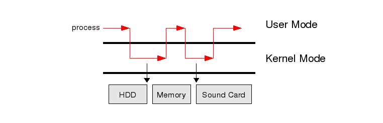 - System Call ์์ฒญ ์ ์ ์ ์ดํ๋ฆฌ์ผ์ด์ ์ ์ ์ ๋ชจ๋์์ ์ปค๋๋ชจ๋๋ก ์ ์ ์ ํ๋์๋ค๊ฐ, ์ปค๋๋ชจ๋์์ ์์ฒญ ์์ ์ ์ฒ๋ฆฌํ ๋ค ์๋ต์ ์ ์ ์ดํ๋ฆฌ์ผ์ด์ ์ ๋ฐํํ๋ฉด์ ๋ค์ ์ ์ ๋ชจ๋๋ก ๋๋์๊ฐ๊ฒ ๋จ